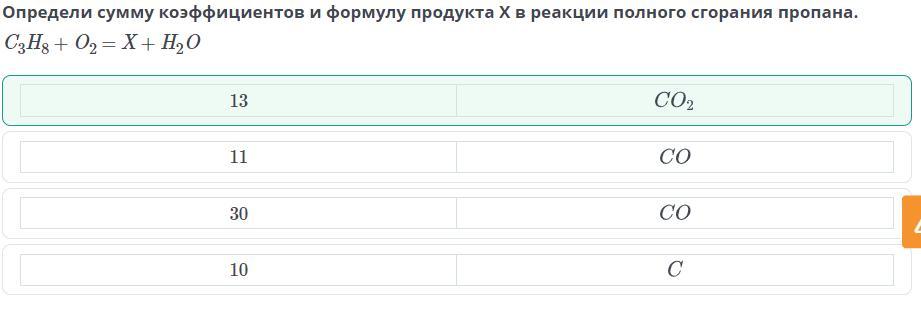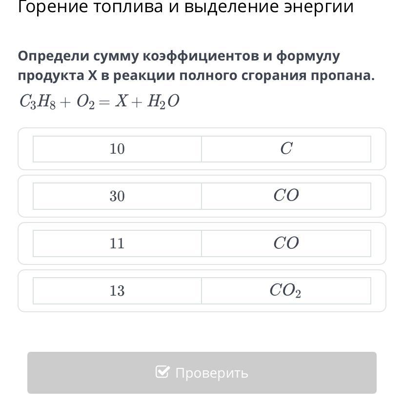 продукта X в реакции полного сгорания пропана.