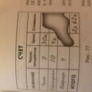 Условие: Счет, полученный несколько лет назад в магазине сохранился не полностью (он на картинке). Восстановить счет.