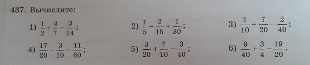 1) Проводишь всё к общему знаметателю 14. Первую дробь домножаешь на 7 и получится 7/14, вторую домножаешь на 2, получится 8/14. Теперь, когда все дроби имеют одинаковый знаменатель - складываешь числители. Получается 12/14. Здесь есть на что сократить - 2. Получается 6/7. Аналогично делай с остальными. Надеюсь, помогла.