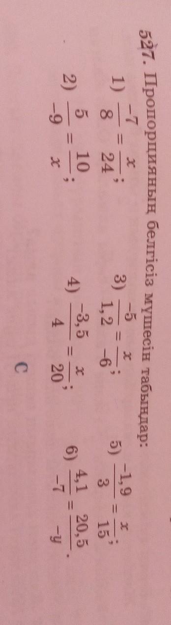 527. Пропорцияның белгісіз мүшесін табыңдар: