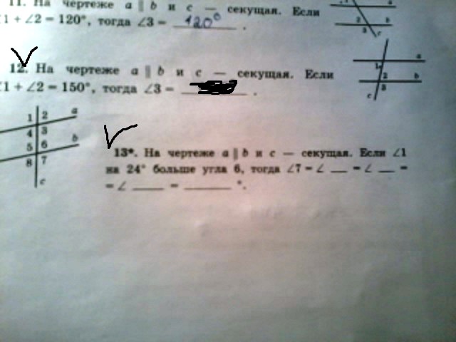 13)плохо видно,конечно,но я думаю,что он равен углу 3,т.к. соответственные углы ,а т.к. 1 и 3 угол вертикальные,то получается,7 угол равен 1 углу ,а угол 1=24+x