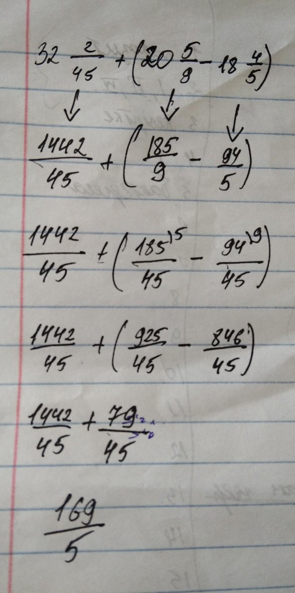 Получилось:1442/45+(185/9-94/5)=