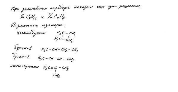 ур-е сгор-я у.в. в общем виде: CxHy + (x+0.25*y)O2 = xCO2 + 0.5*yH2O, т.о. по условию x+0.25*y = 6.5, откуда x = 6.5-0.25*y (2);