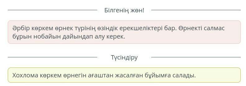Көркем өрнек қандай материалдан жасалған бұйымға салынғанын анықта.