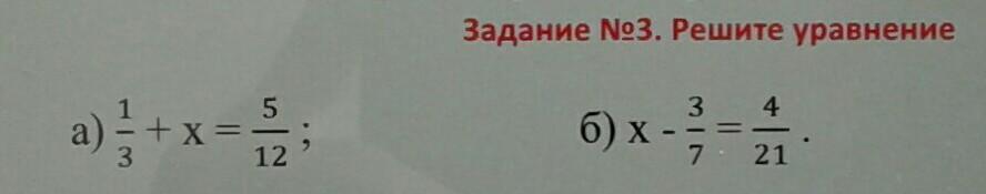 а) 1/3 + х = 5/12.