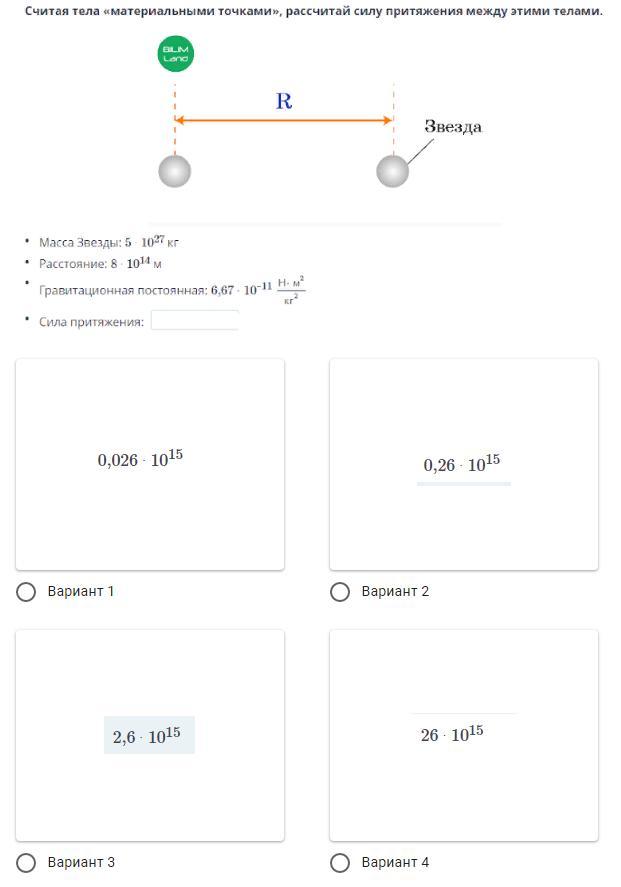 Сила притяжения между телами считается по формуле