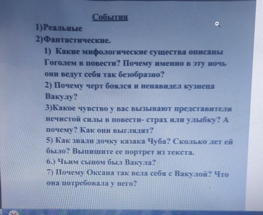 1ведьми черти 1)2 потому что это ночь на рождество 2 за картину которую вакула написал в церкву 3 визивает улибку (а почему сам ответишь) 3)2 мерзко 5 оксана
