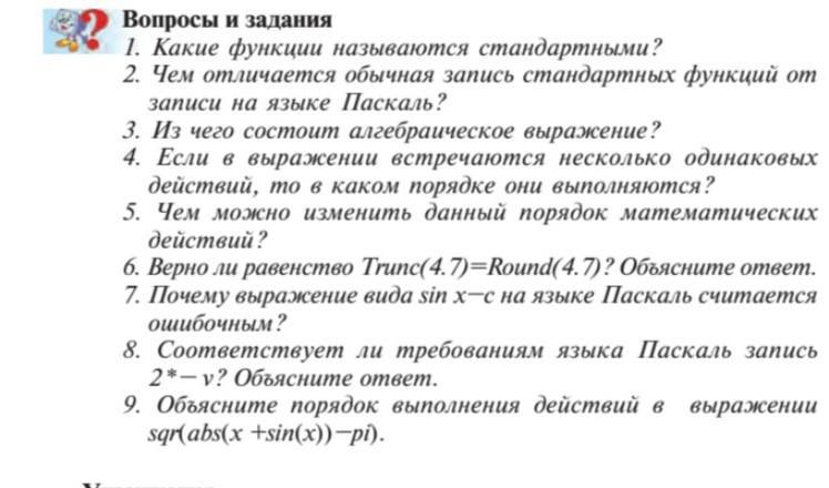 2) Здесь конечно не сказано какие стандартные функции откуда они берутся, почти в любом языке программирования есть стандартные функции и им типовые