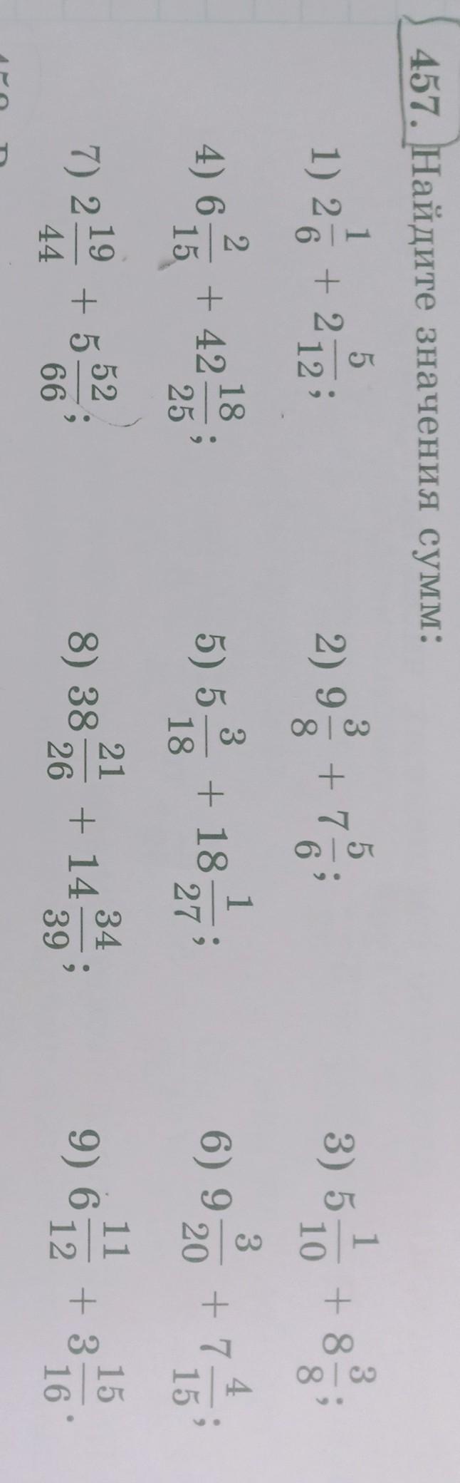 Ответ:1)4 7/12, 2)17 5/24, 3)13 19/40, 4)48 64/75, 5)23 3/14, 6)16 5/12, 7)8 29/132, 8)53 53/78, 9)42 41/48