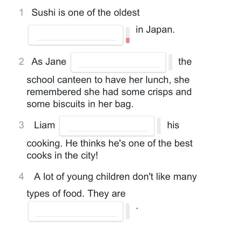 1food tradition 2to head for 3take pride in 4fussy eater.........