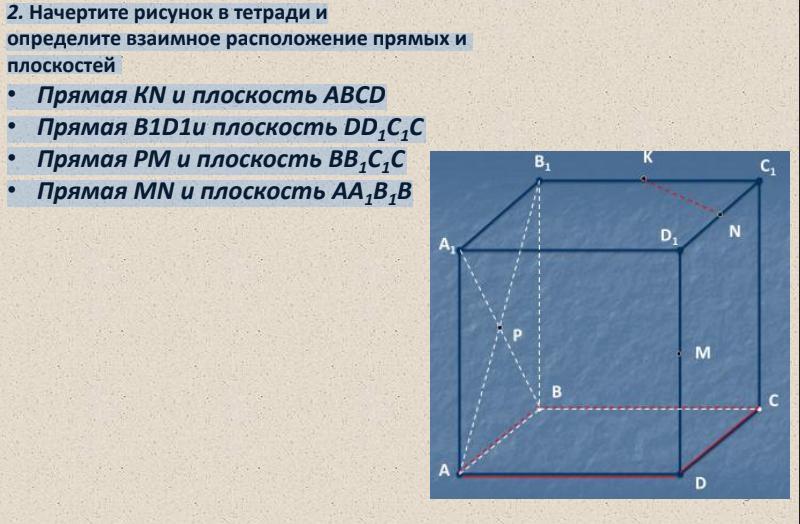 • Прямая КN и плоскость ABCD