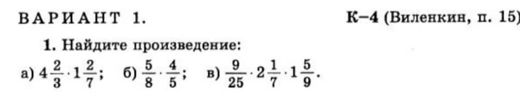 в) 9/25 * 15/7 * 14/9 = 1/5 * 3 * 2 = 6/5