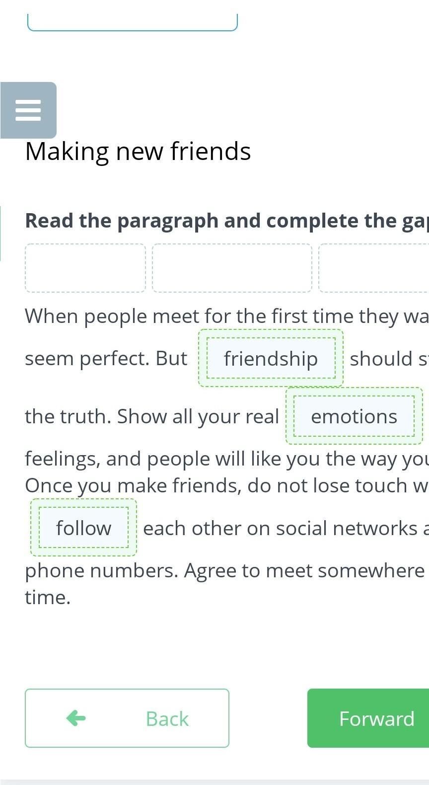and feelings, and people will like you the way you are. Once you make friends, do not lose touch with them.