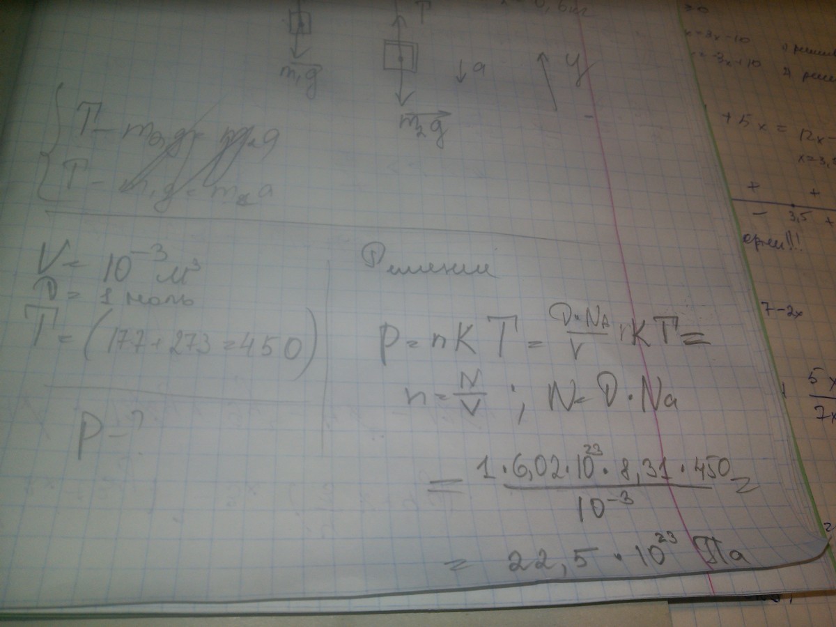 один моль идеального газа занимает объем 1 л имеет температуру 177C.При каком давлении находится газ?