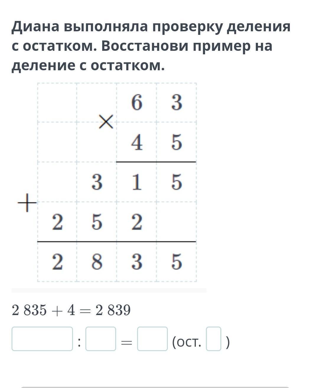 2839/45=63(ост 4)