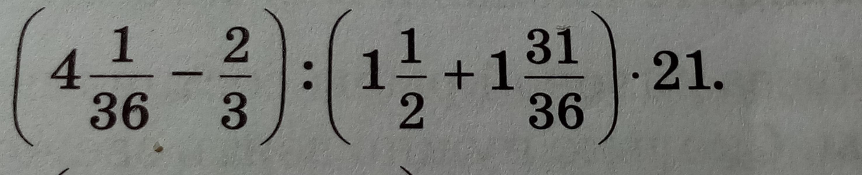 ( 4(целых) 1/36-2/3): (1(целых) /1/2+1/31/36)*21