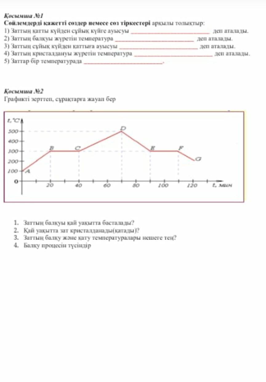 1)Заттың қатты күйден сұйық күйге ауысуы кристалдану деп аталады