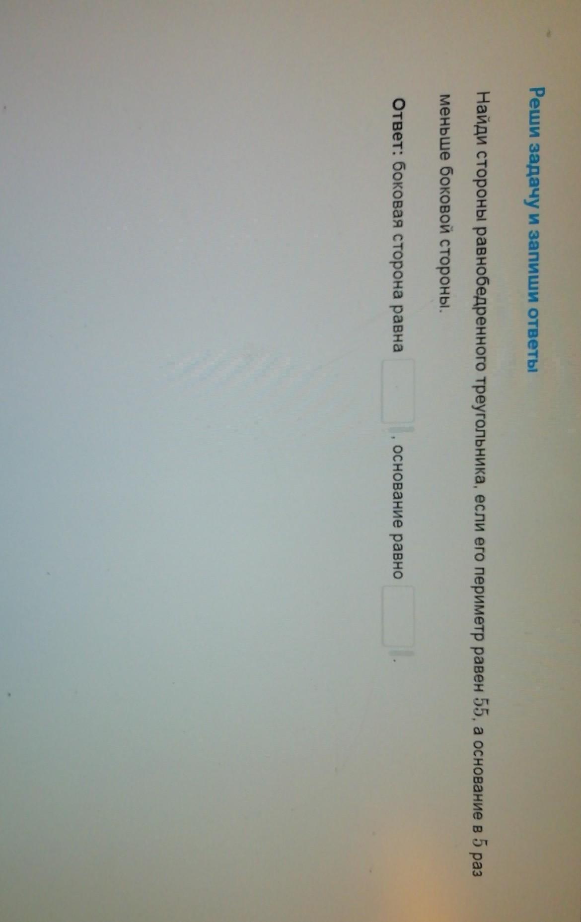 Найди стороны равнобедренного треугольника, если его периметр равен 55, а основание в 5 раз