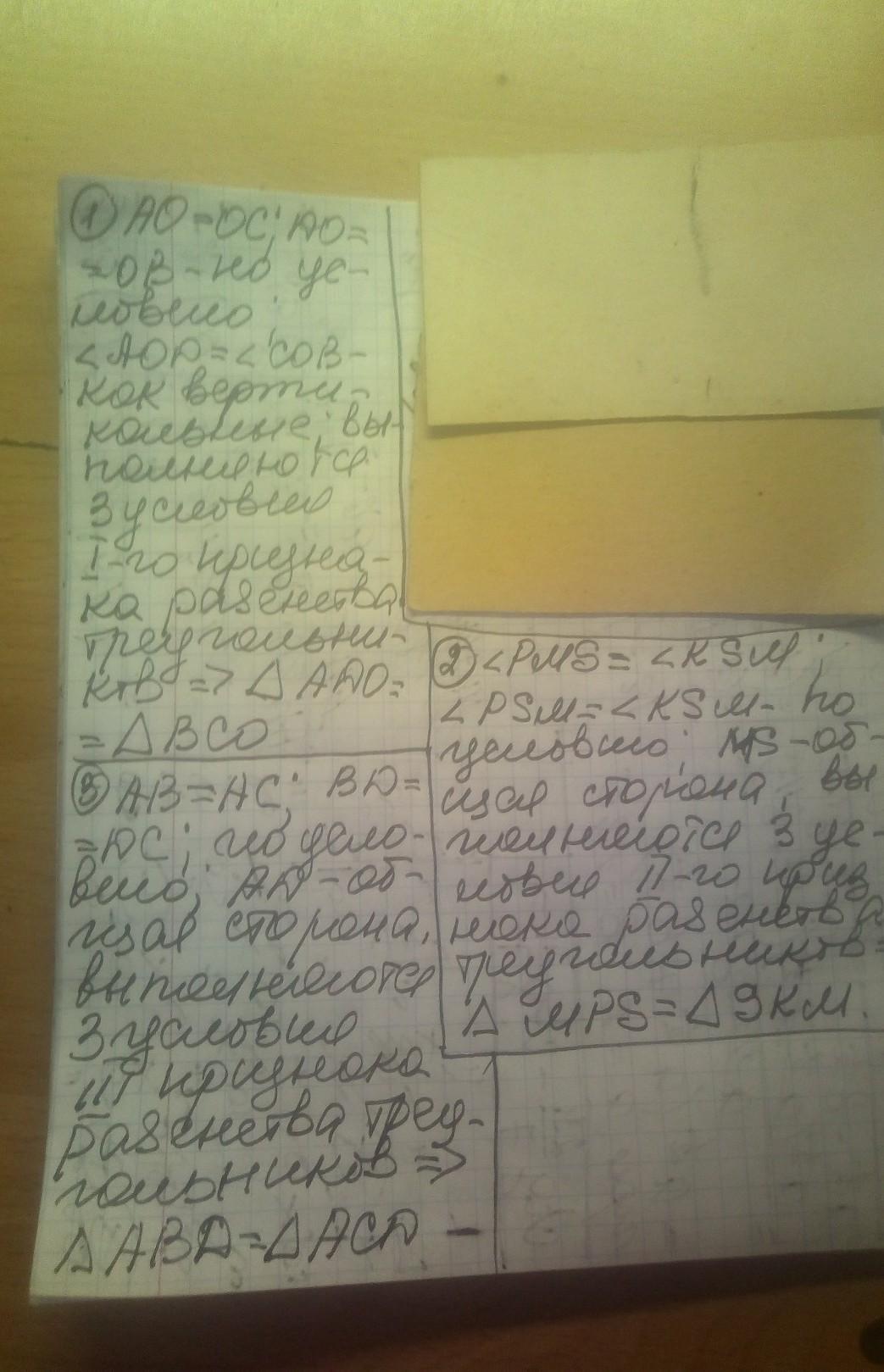 1) т.к. уголDOA и угол COB вертикальные, следовательно труегольники равны по дву сторонам и углу между ними 1 признак равенства треугольников