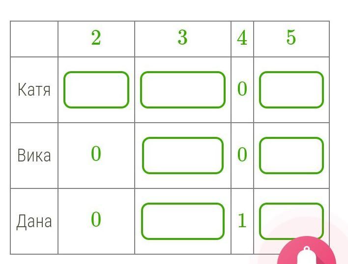 Ответ:У даны- 4,у Кати -5, у Вики 2