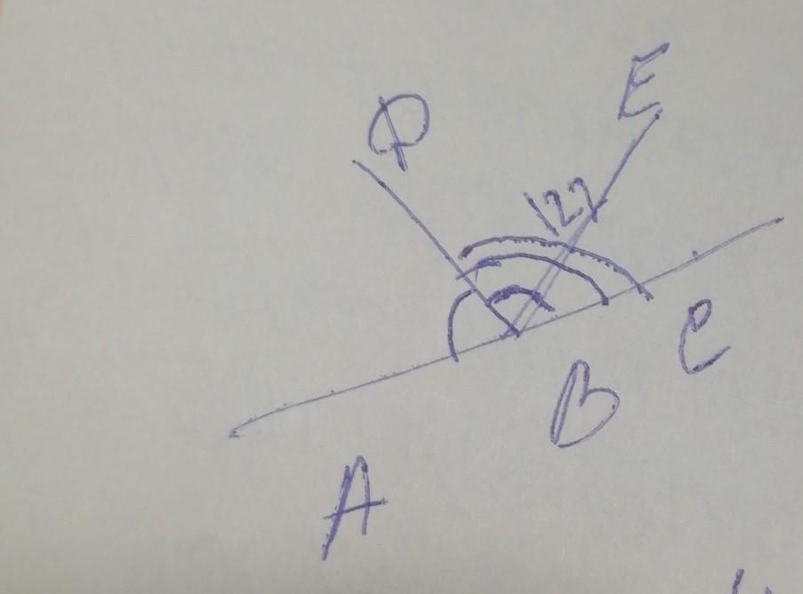 из вершины развёрнутого угла ABC проведены два луча BD и BE так,что BD-биссектриса угла ABE и CBD=122.