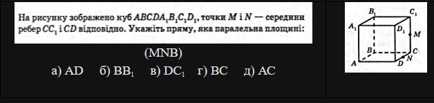 На рисунку зображено куб abcda1b1c1d1. точки m і n середини ребер cc1 і cd відповідно. укажіть пряму яка паралельна площині amn