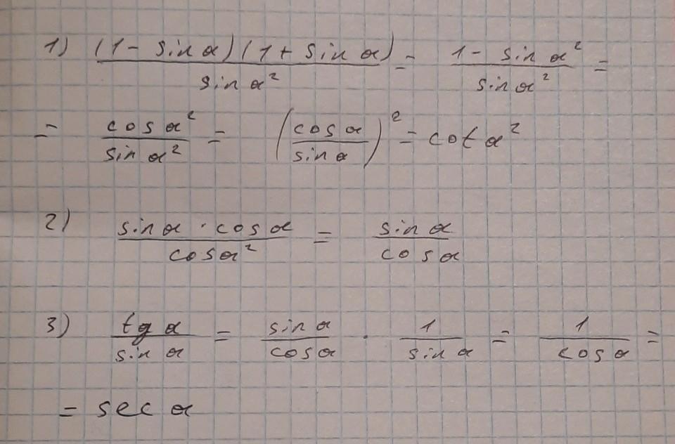 Упростите выражение:1)(1-sin a)(1+sin a)/sin^2a