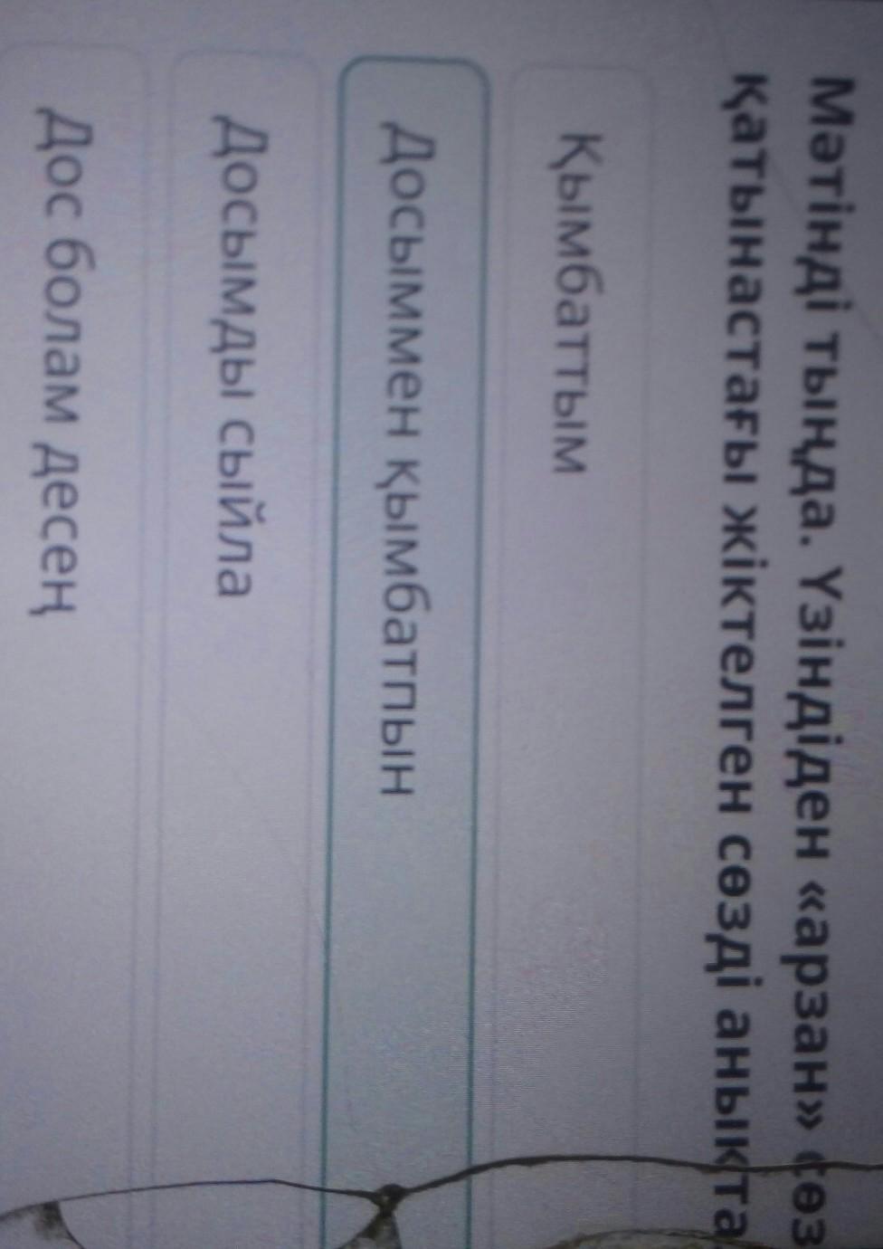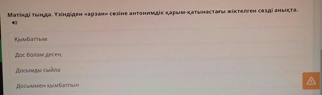 Мәтінді тыңда. Үзіндіден «арзан» сөзіне антонимдік қарым-қатынастағы жіктелген сөзді анықта.