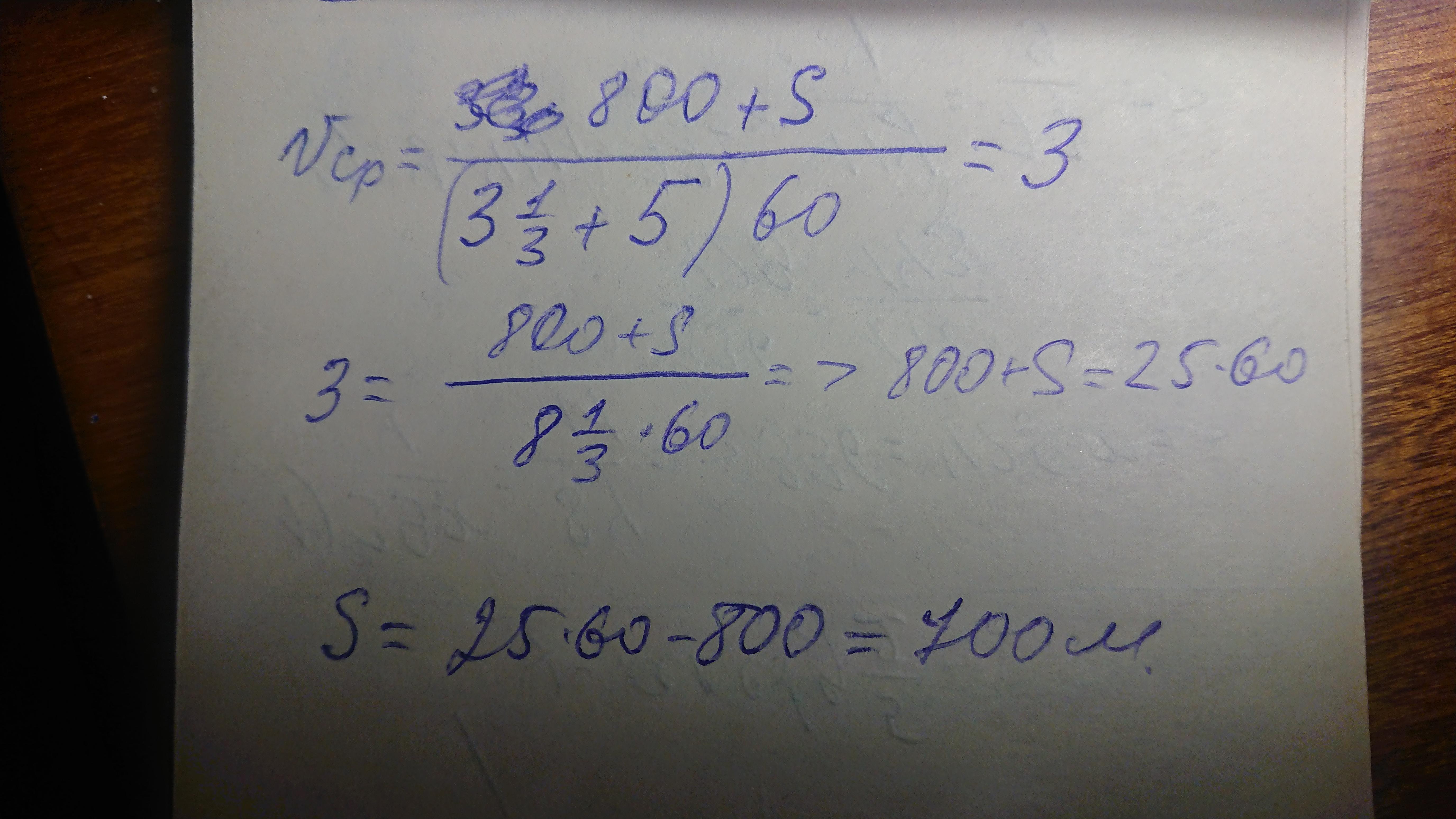 Лыжник пробежал 800м за 3 мин. 20 сек., а потом двигался в течении 5 мин. Средняя скорость лыжника составила 3м/с. Какова длина второго участка пути?