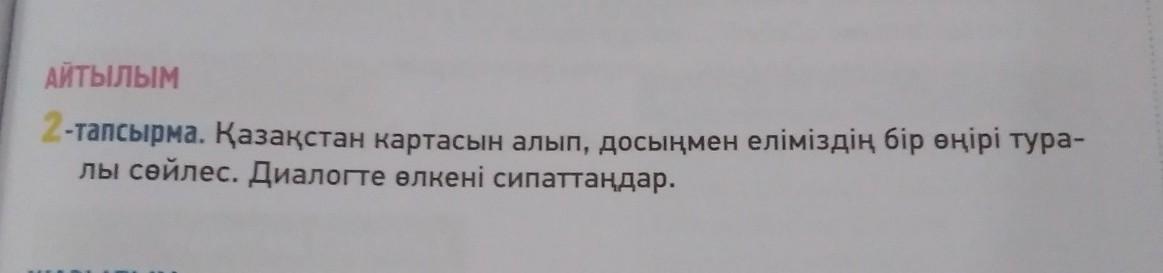 2-тапсырма. Қазақстан картасын алып, досыңмен еліміздің бір өңірі тура-