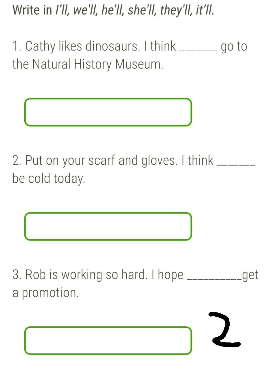 2.Put on your scraf and gloves.I think it'll be cold today.