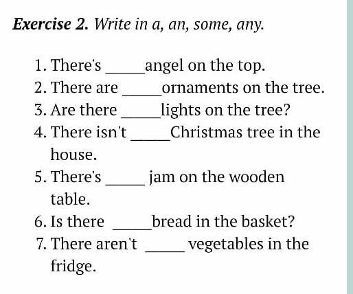 Объяснение: 1) an, 2) some, 3) any ,4)any 5) a 6)any 7)any