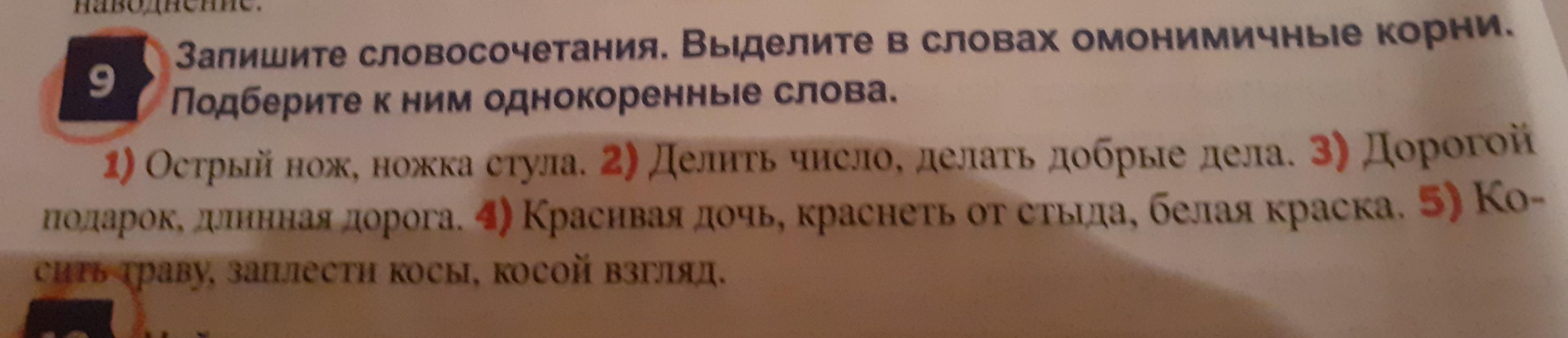 красивая(Крас) дочь,краснеть(Крас) от стыда,белая краска (Крас). 5. косить(кос) траву,заплетать косы (кос),косой(кос) взгляд.