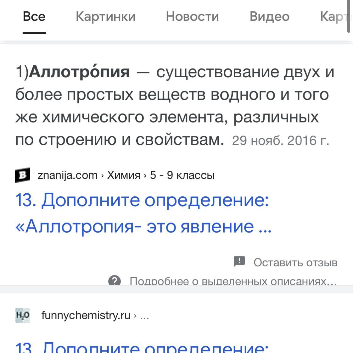 это когда у одного химического элемента может быть много разных состояний. например, алмаз и графит - это простые вещества углерода, т.е. алмаз и графит можно записать формулой C.