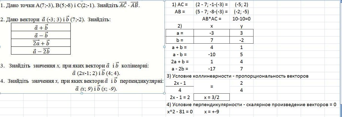 Для расчёта параметров векторов использована программа Excel.