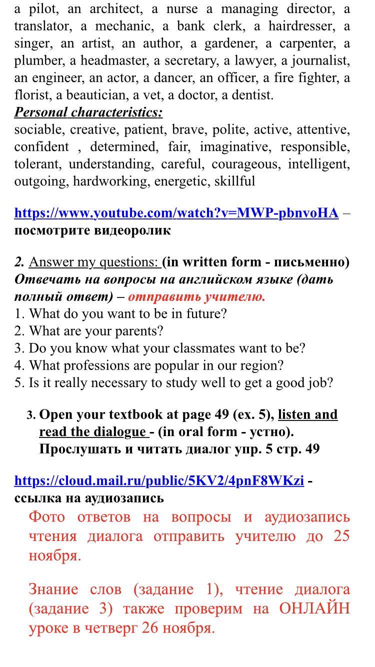 Отвечать на вопросы на английском языке (дать полный ответ) – отправить учителю.