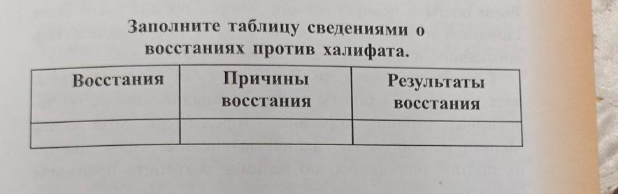 Заполните таблицу сведениями о восстаниях против халифата.