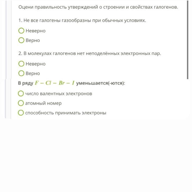 1 верно (фтор и хлор - газы, бром - жидкость, иод - твердое вещество)