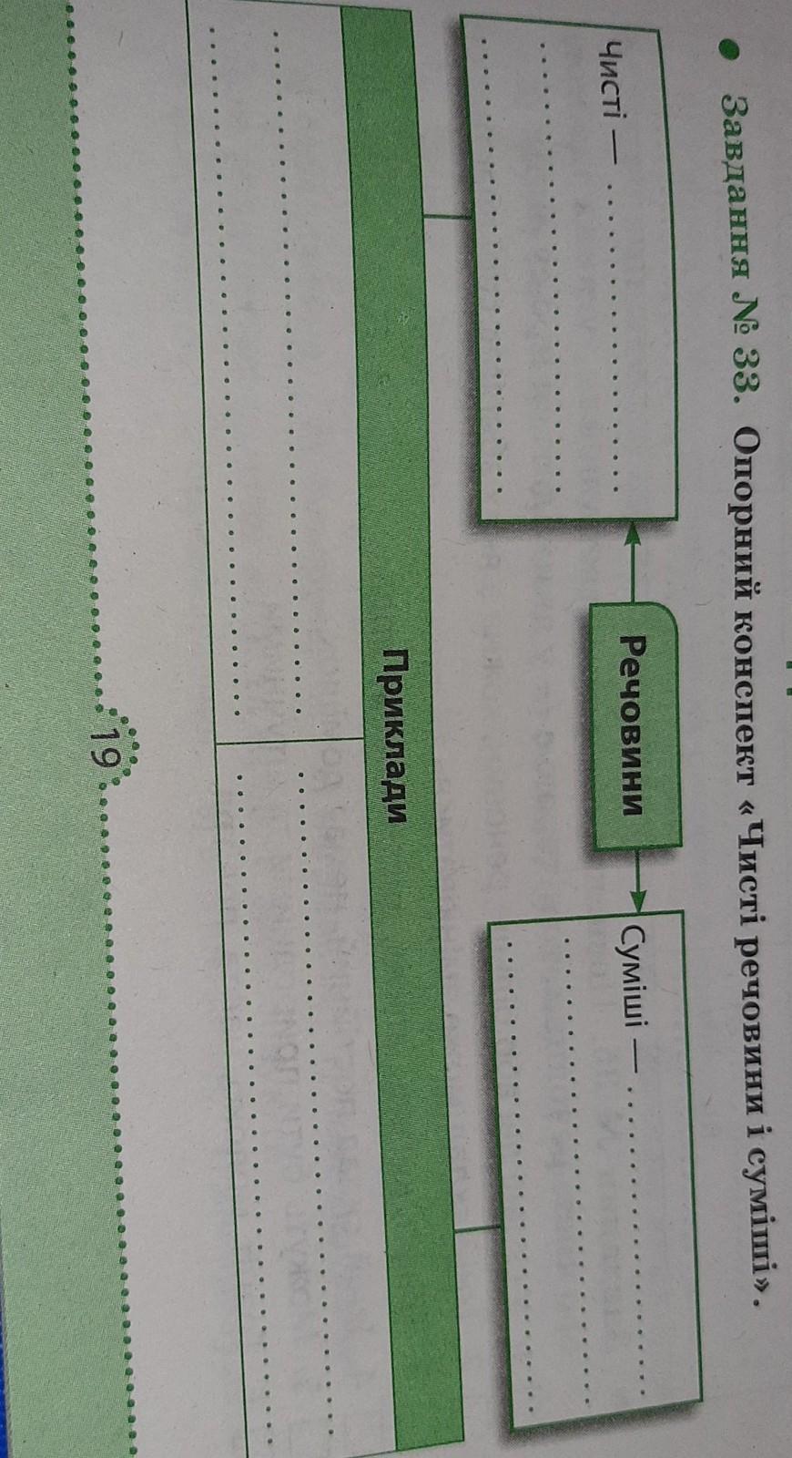 Приклади чистих речовин: самородок золота, газоподібна речовина хлор у запаяній скляній ампулі, вода у склянці, алюміній, срібло, мідь, фосфор. Приклади природних сумішей: повітря, ґрунт, граніт, морська вода, молоко, кефір, нафта, фруктові соки, природний газ