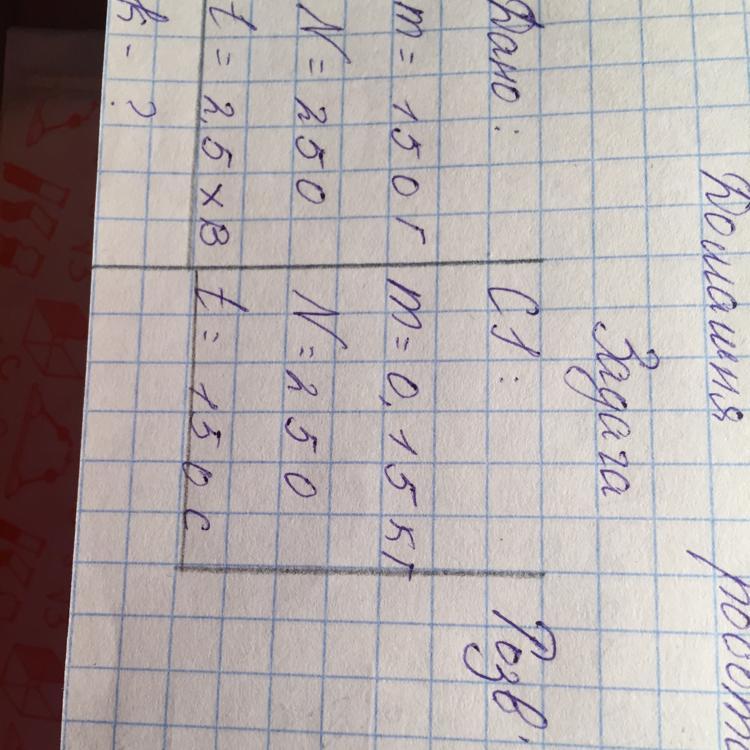 Как понимаю тут говорится что груз массой 150г весит на пружине жесткостью К, если грузик вывести из положения равновесия то за 150с он совершил 250 колебания
