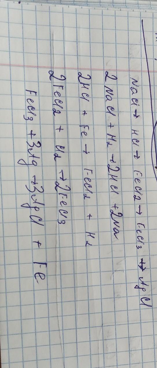 Напишите уравнения реакций, с помощью которых можно осуществить следующие превращения: а) NaCl ⟶ HCl ⟶ FeCl2 ⟶ FeCl3 ⟶ AgCl