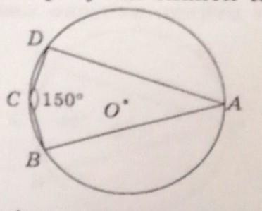 Ответ: угол А = 360 - 180 - 150 = 30 градусов.