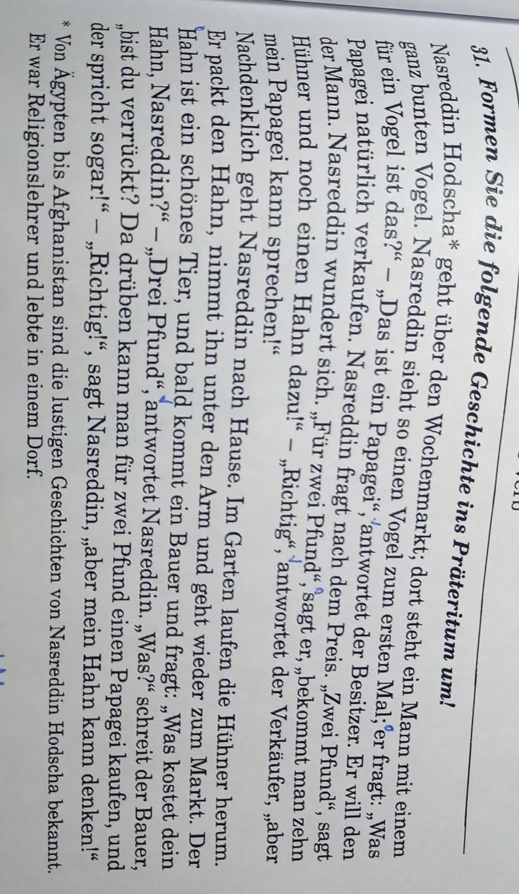 Прямую речь я в Präteritum не перевела (это и не нужно), иначе теряется смысл рассказа.
