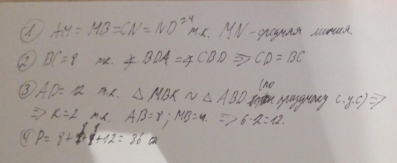 На рисунке 8 ABCD- трапеция. Найдите периметр ABCD. Очень срочно нужно, заранее спасибо)))