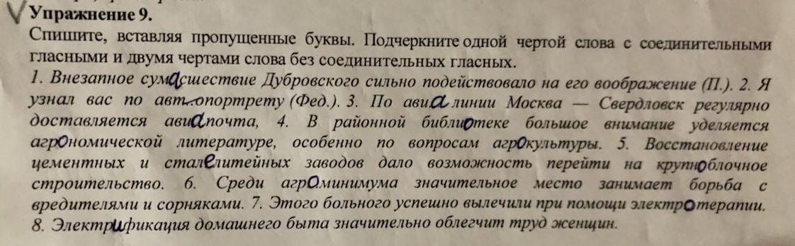 Помогите пожалуйста срочно подчеркнуть в упражнении одной чертой слова с соединительными гласными и двумя чертами слова без соединительных гласных. Срочнооооо