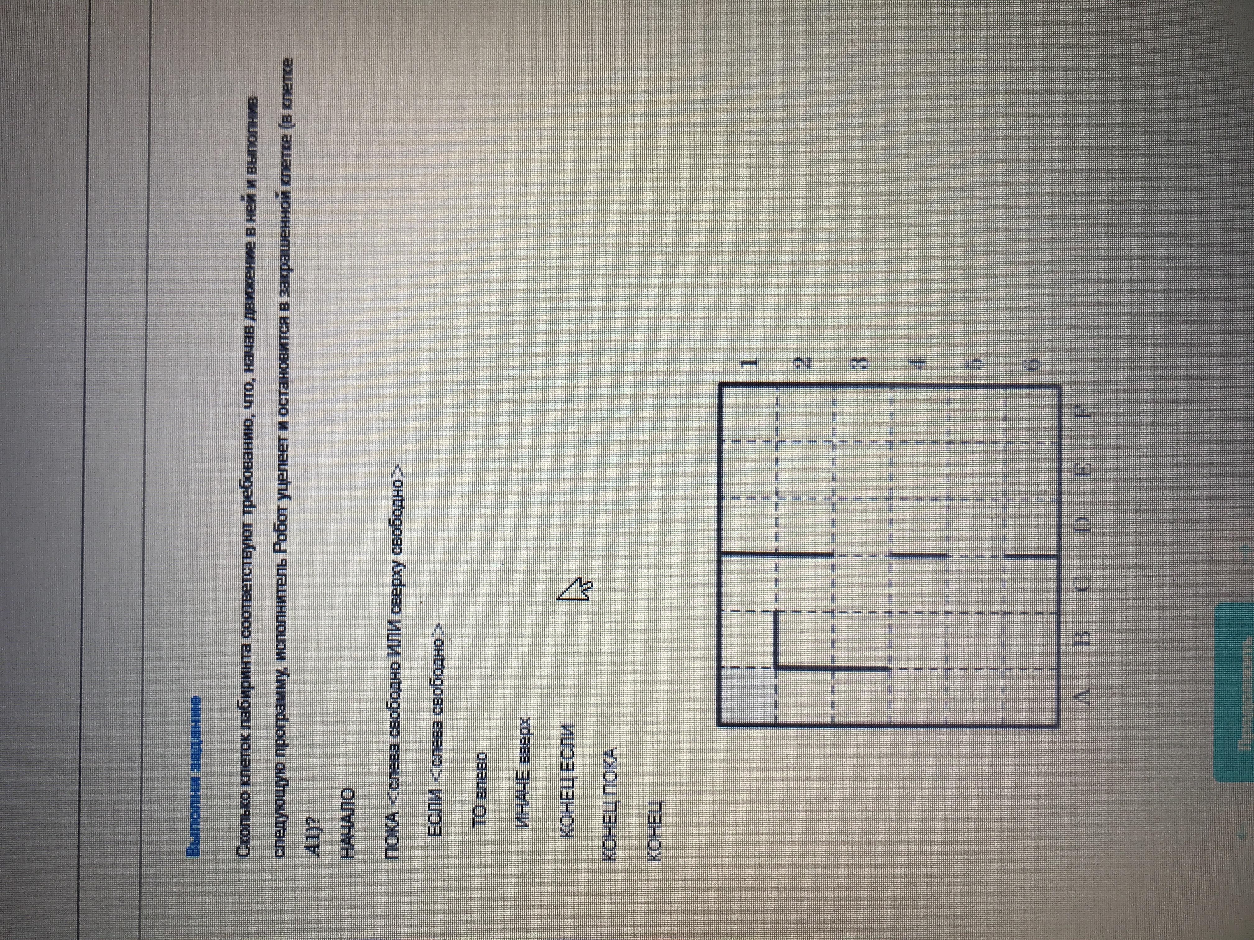 Сколько клеток лабиринта соответствует требованию, что, начав движение в ней и выполнив следующую программу, исполнитель робот уцелеет и остановится в закрашенной клетке?