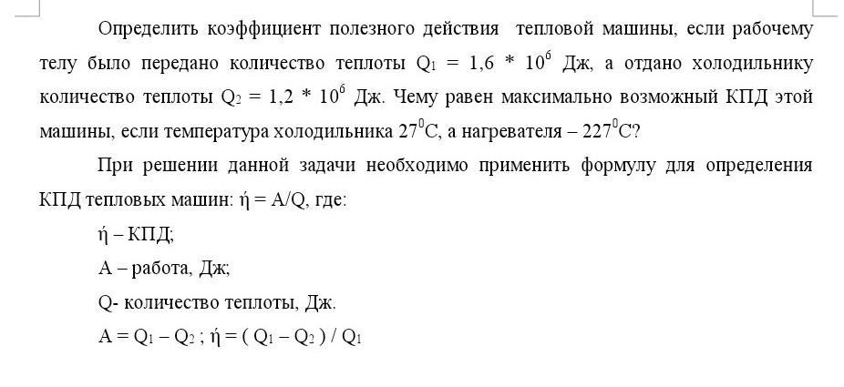 η = A / Q₁ = 0,4 / 1,6 = 0,25 или η = 25%