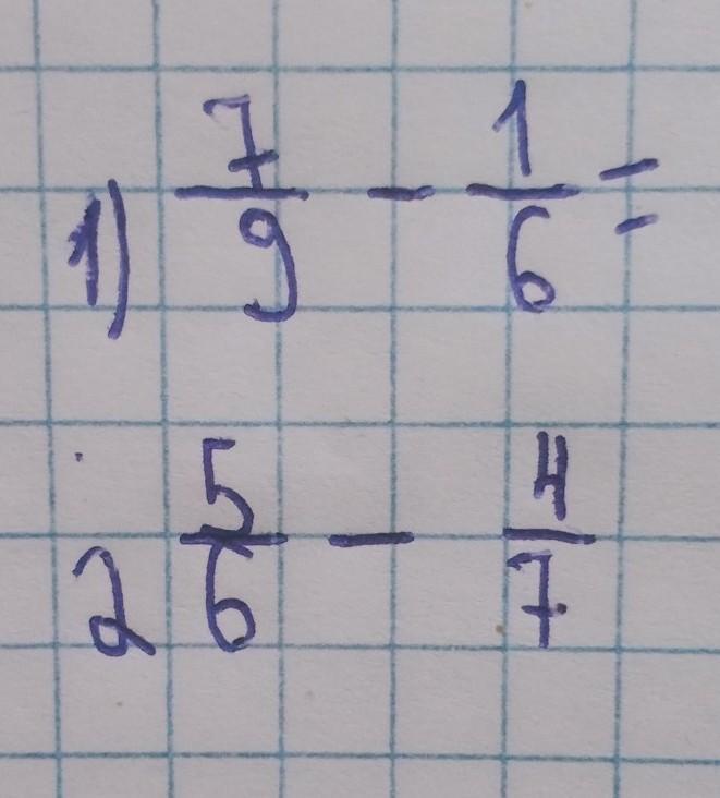 1 ) 7/9 - 1/6 = 14/18 - 3/18 = 11/18 ;