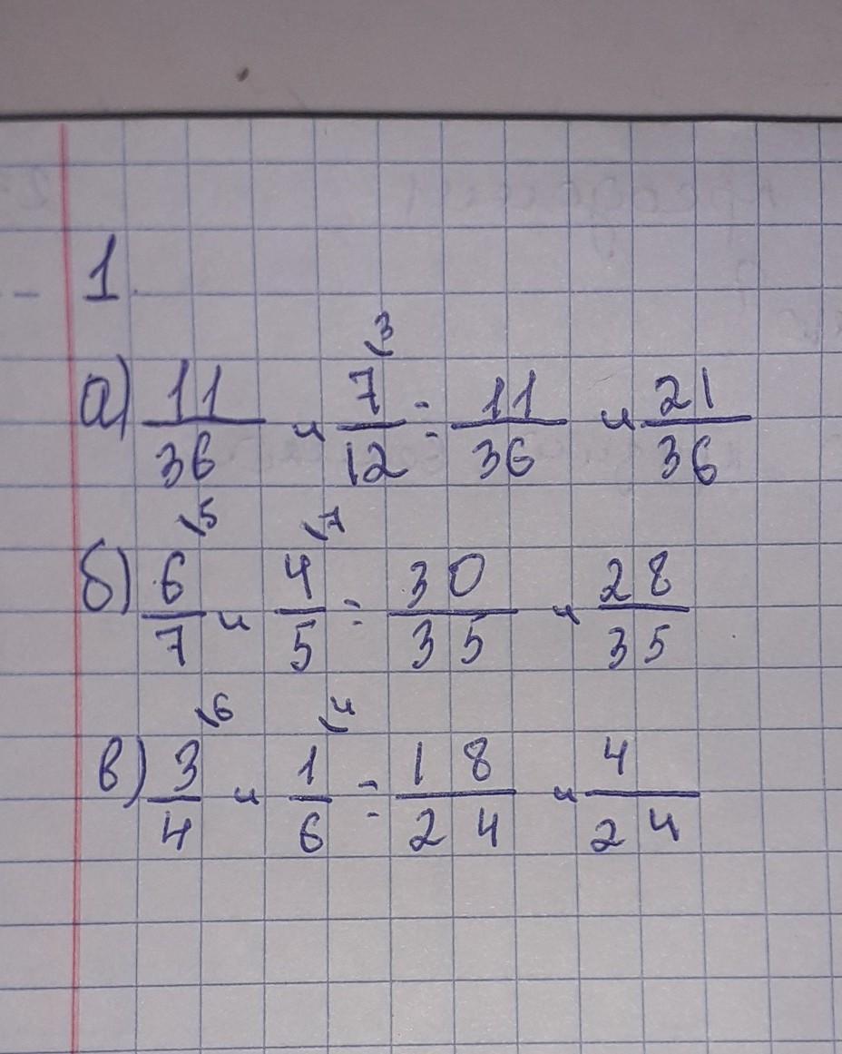 а) 11/36 и 7/12,6/7 и 4/5,3/4 и 1/6 ПОМОГИТЕ ПОЖАЛУЙСТА