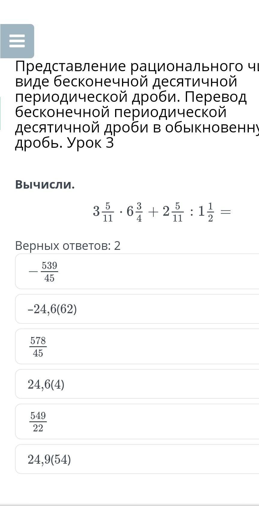 Представление рационального числа в виде бесконечной десятичной периодической дроби. Перевод бесконечной периодической десятичной дроби в обыкновенную дробь. Урок 3
